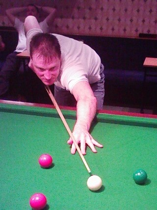 The precarious scoreline was not to discourage Legion veteran Alan Cannan as he faced Michael Moore. A real dogged encounter with a number of easy pots missed by both players was not to end without real drama. As the game went all the way to the black, a pot up the length of the side cushion from Alan that wouldn’t have looked out of place coming from any professional exponent was to decide the game, 44-33.