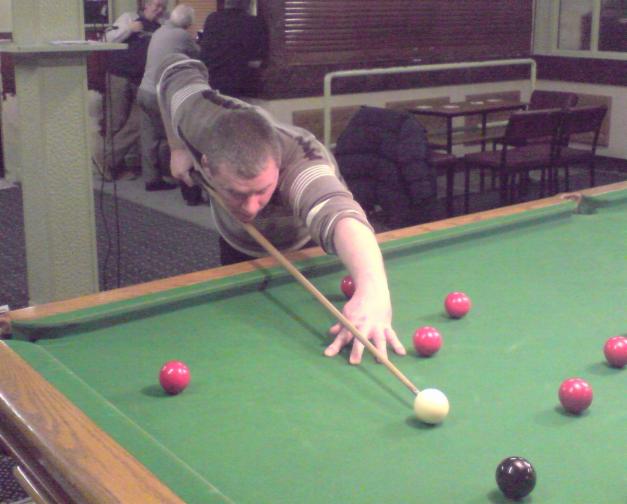 Third placed Railway club were to win 5-1 at home to Senhouse B with first frame of the evening proving crucial. With the break at 29 and facing a black off the spot with reds well placed Senhouse B’s Shaun Ayre was well and truly in command. A surprising miss followed and Railway’s Paul Graham didn’t look back winning the game with some assured potting.